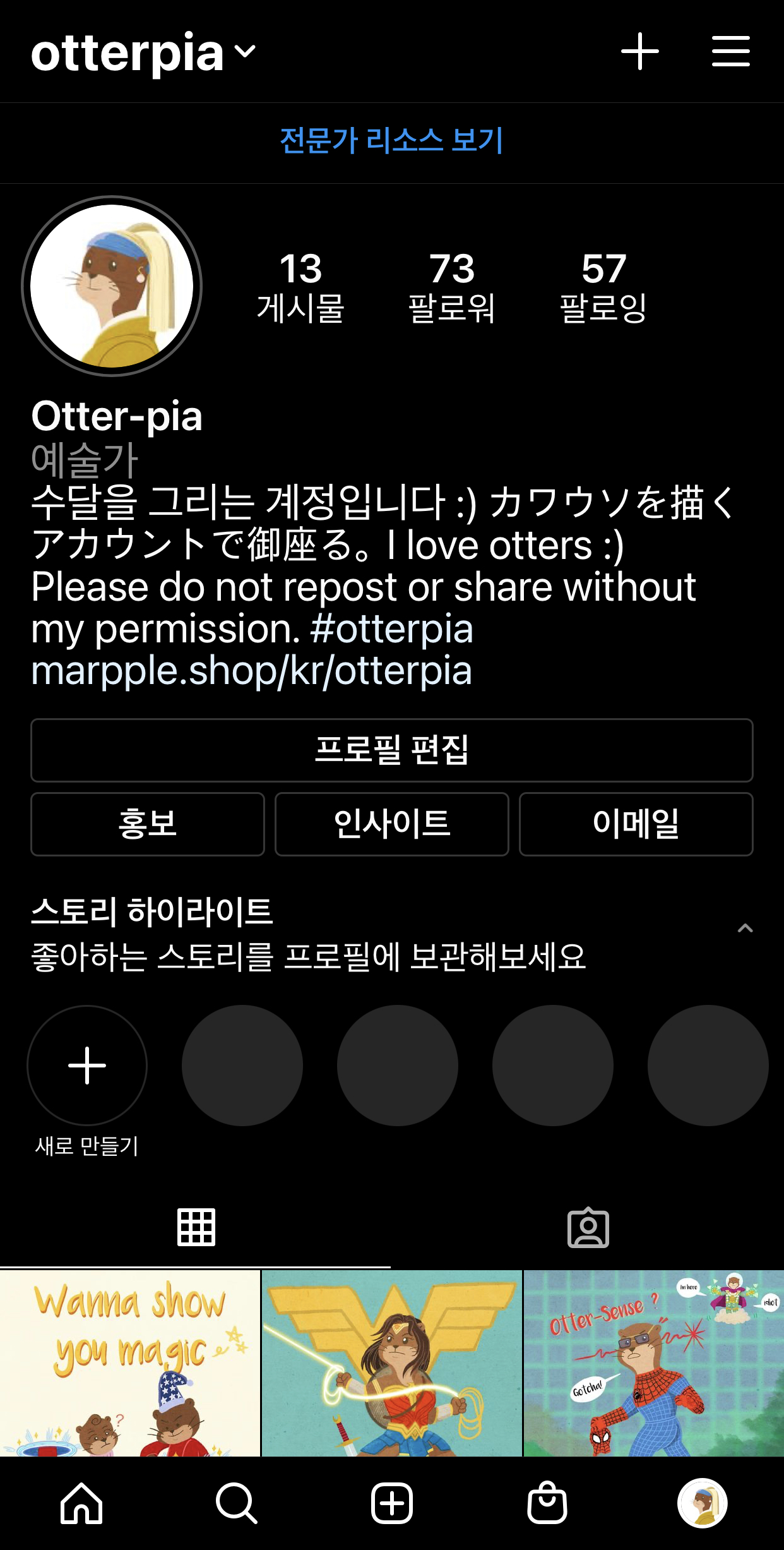 마플샵은 아직 초라하지만, 인스타그램 계정에는 귀여운 수달 그림들이 가득 담길 예정이니 많은 관심과 팔로우 부탁드릴게요 :)