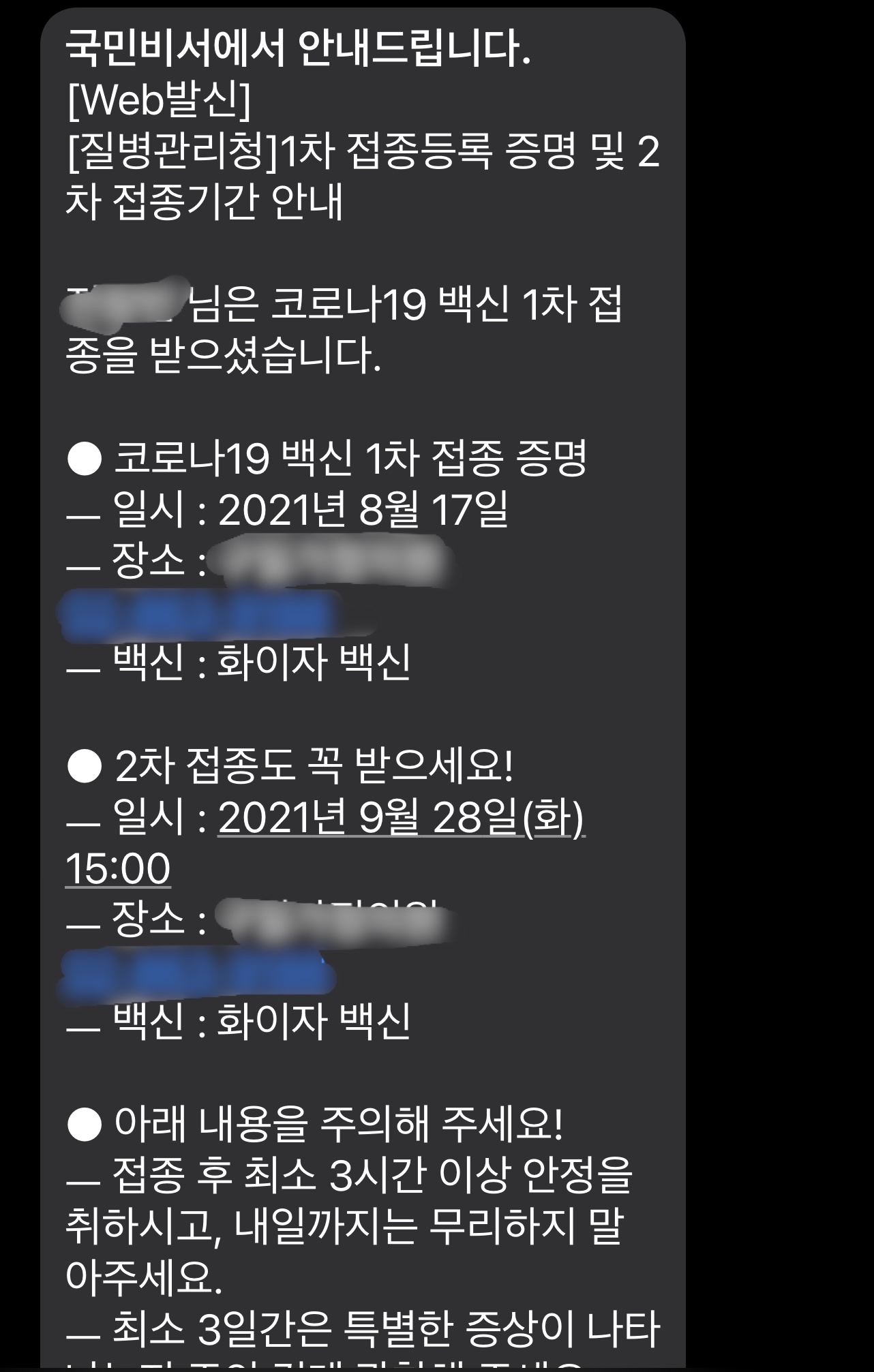 꽤 잦은 빈도로 알림을 받았고, 30대인 우리 부부가 접종하기에 부담스러운