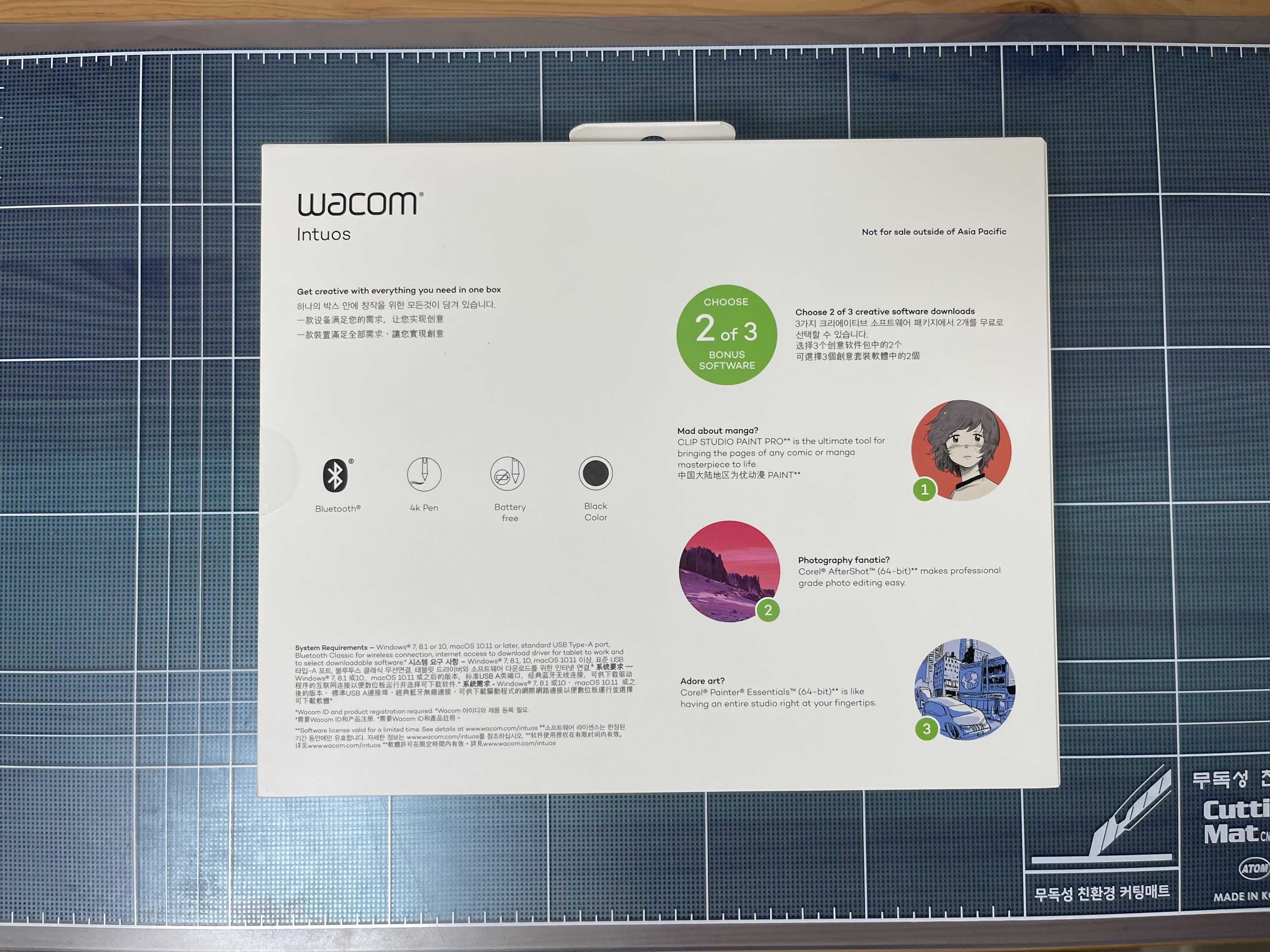 WACOM CTL-4100WL(박스 뒷면) 제공하는 3가지 소프트웨어 중에서 2가지를 골라서 무료로 설치할 수 있는 특전이 포함된 제품이었나 봐요.