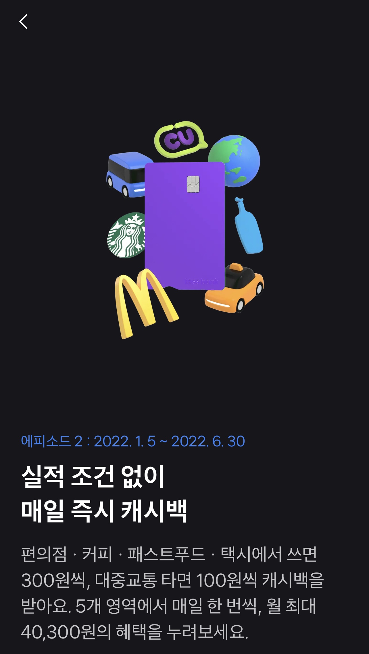 저는 대중교통을 이용한 다음날 캐시백 통지가 오더라고요. 이번에 갱신된 에피소드 2의 혜택이 아닌 브랜드 캐시백과 만보기 서비스는 계속 제공할 예정인 듯합니다.