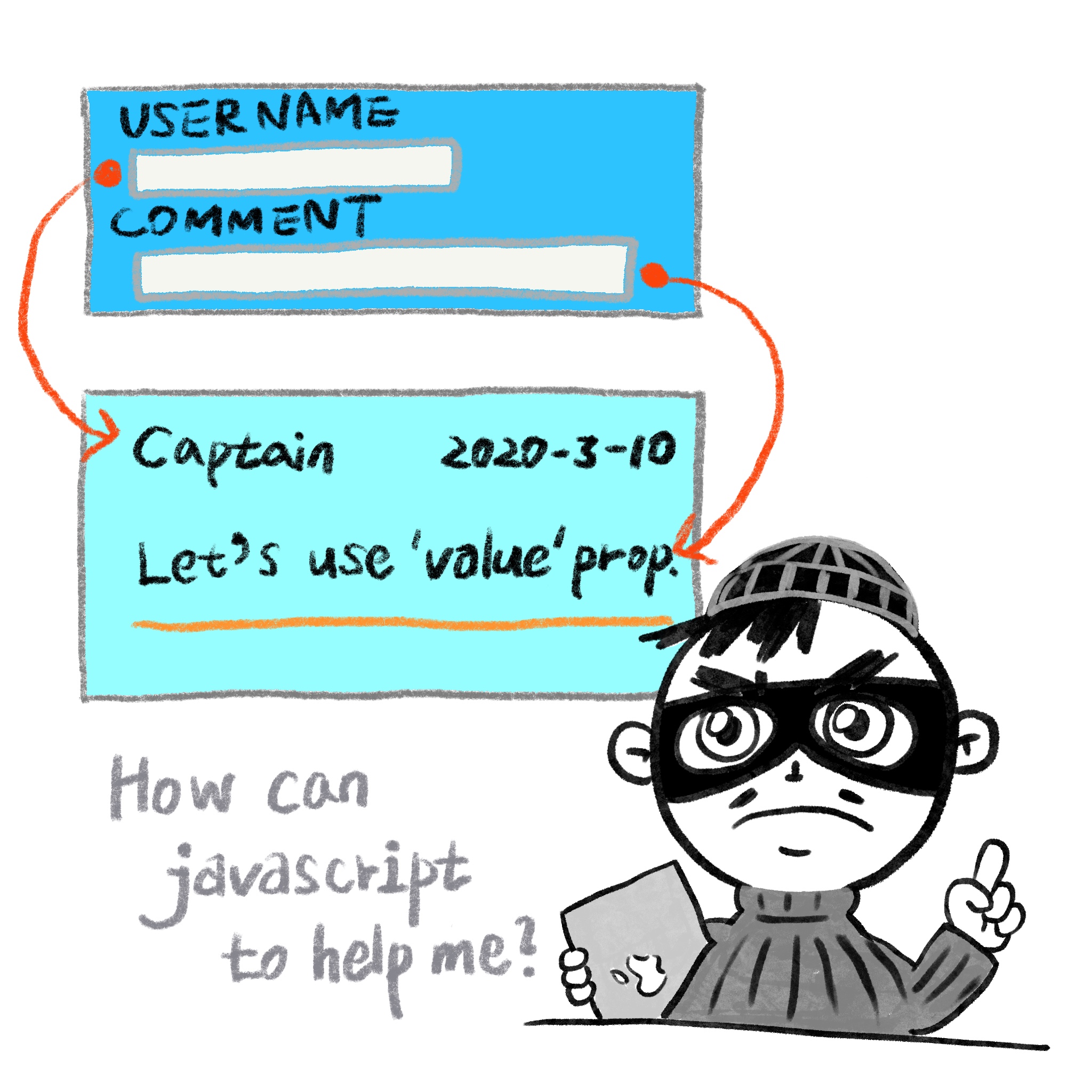 7, 12번째 줄에는 user name(text)/comment(textarea)에 입력된 값을, value로서 읽어들일 수 있도록 코드를 작성했다.