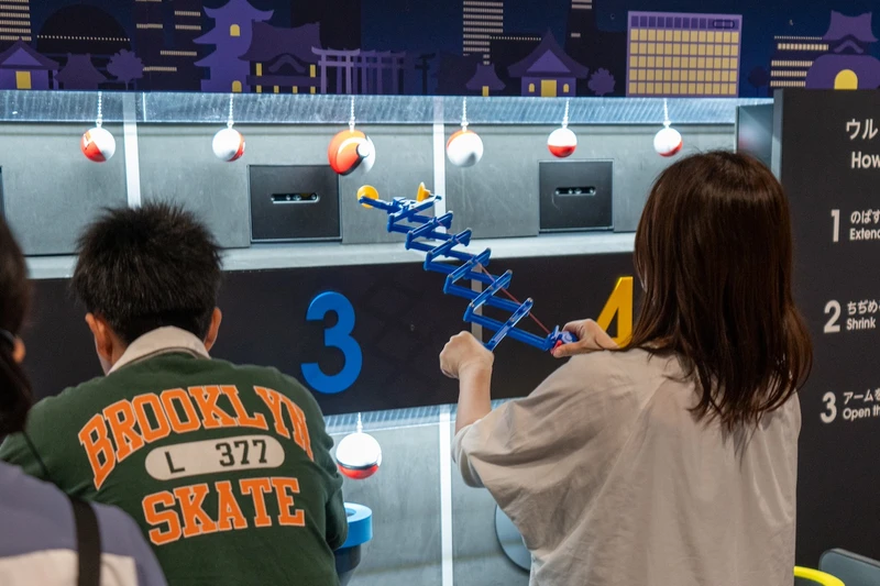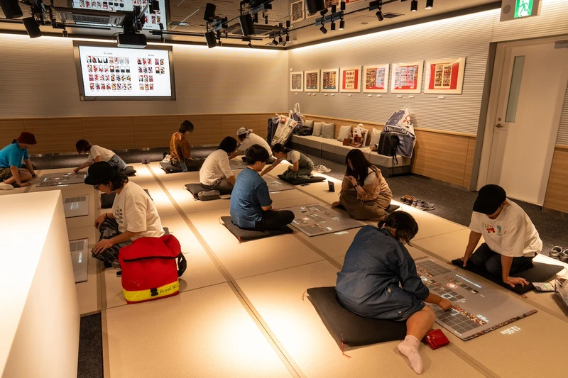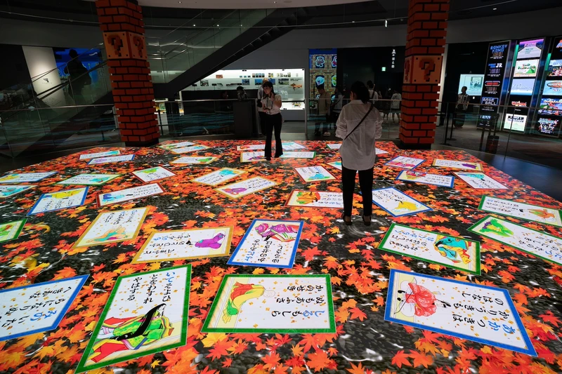 제1전시동 1층에는 닌텐도가 만든 다양한 오락을 현대의 기술로 다시 만든 8종류의 체험전시장이 있습니다. 거대한 컨트롤러를 두 사람이 들고 조작하거나, 바닥에 한가득 표시된 오구라 백인일수(시) 위에서 스마트폰을 한 손에 들고 똑같은 그림을 찾는 닌텐도 뮤지엄 고유의 체험이 가능합니다.