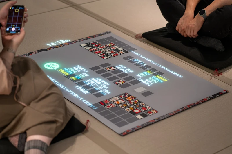 '화투로 놀아볼까' 코너에서는, 화면 인식 기술과 프로젝션 기술을 사용하여 규칙을 모르는 사람도 표시되는 설명을 보면서 화투를 가벼운 마음으로 즐길수 있습니다.